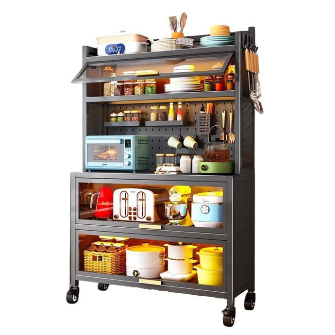יחידת אחסון ענקית ניידת למטבח עם תאורת LED