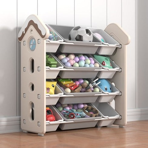 ארגונית צעצועים מודולרית בעלת 4 קומות המשלבת 14 קופסאות אחסון