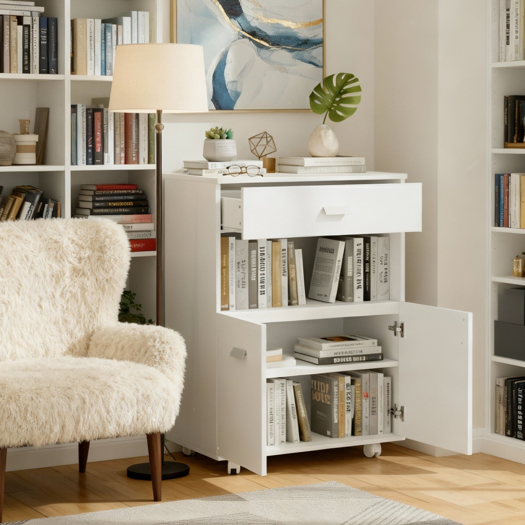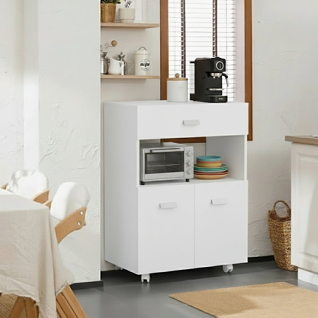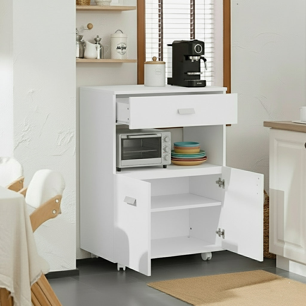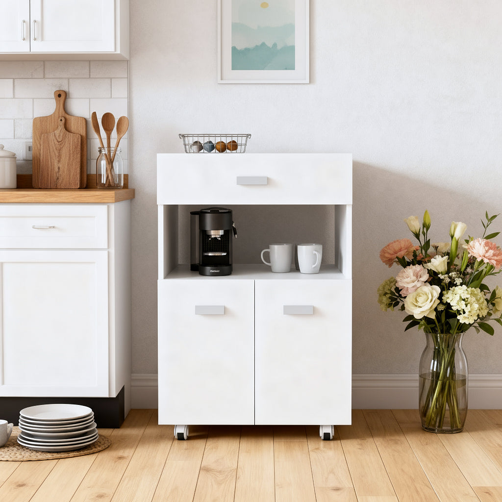 פתרון אחסון מושלם למטבח ארון שירות נייד המשלב אחסון ועיצוב בגוון לבן יוקרתי