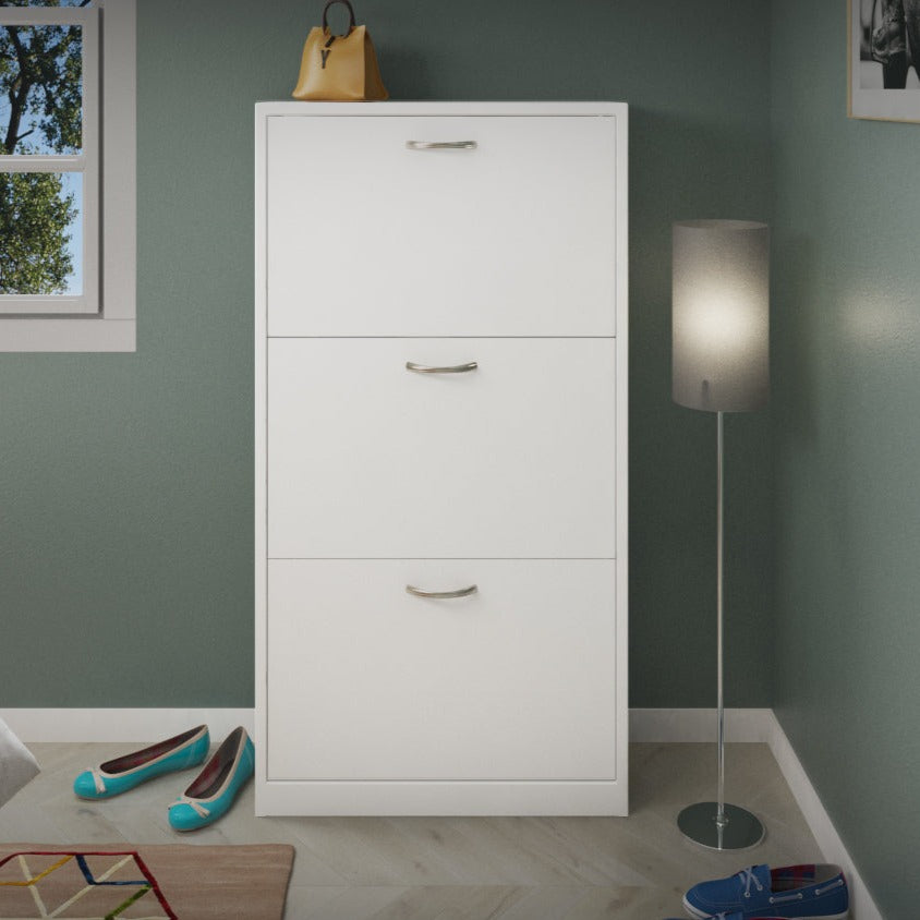 ארון נעליים בעל שלושה תאים כאשר בכל תא שתי מגירות אחסון גדולות