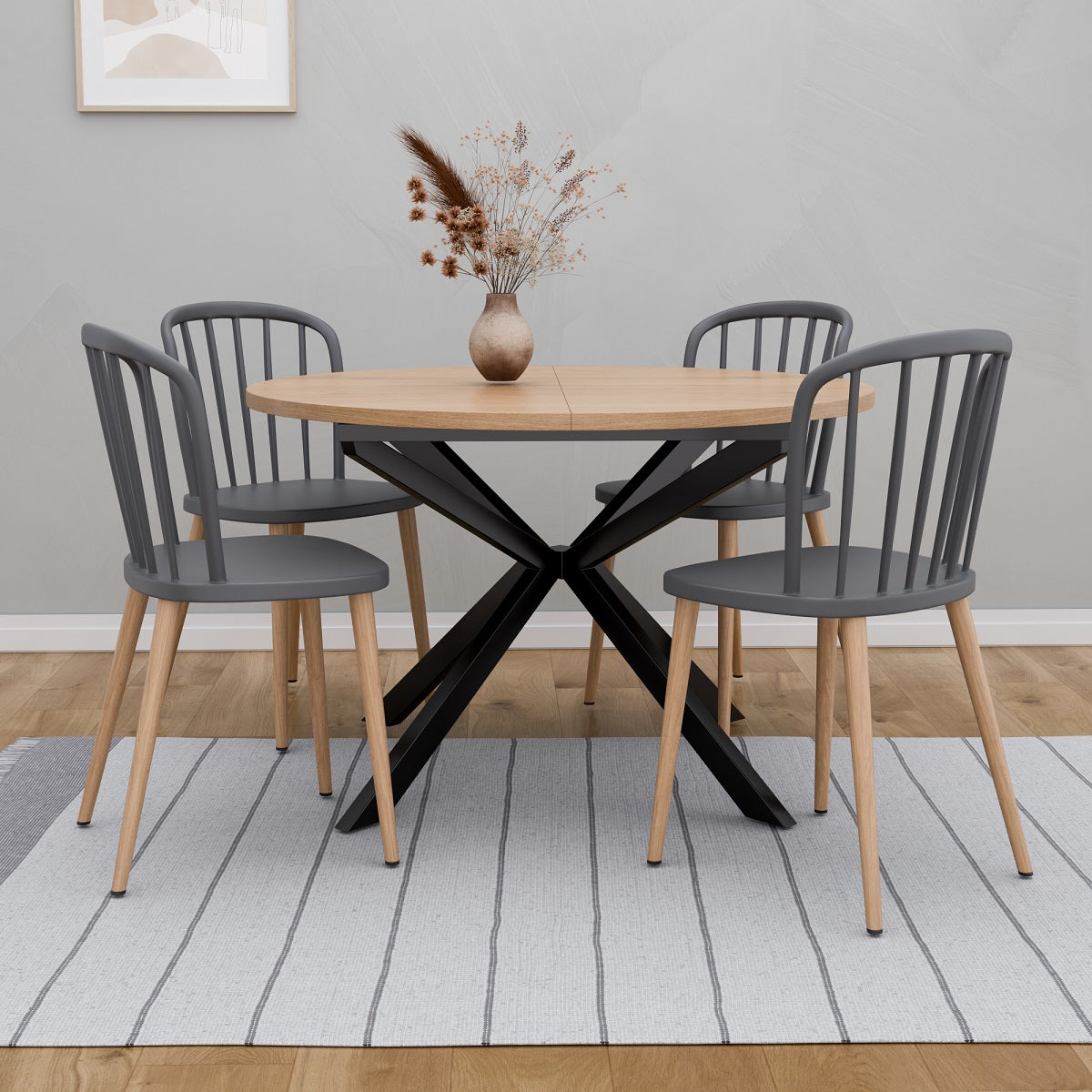 רגלי מתכת בציפוי דמוי עץ יוקרתי ומושב פלסטיק איכותי