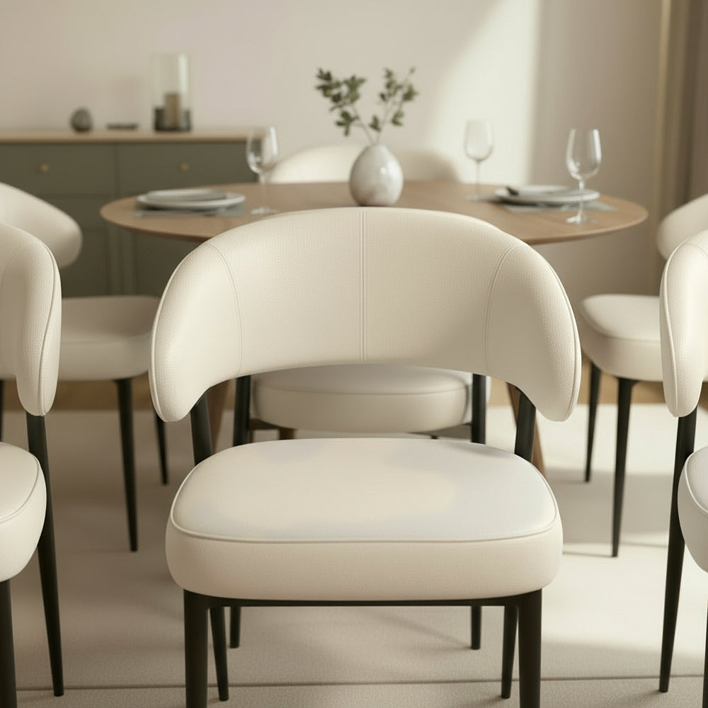 כיסא פינת אוכל מרופד בנדיבות ומשענת גב תומכת בגימור דמוי עור יוקרתי