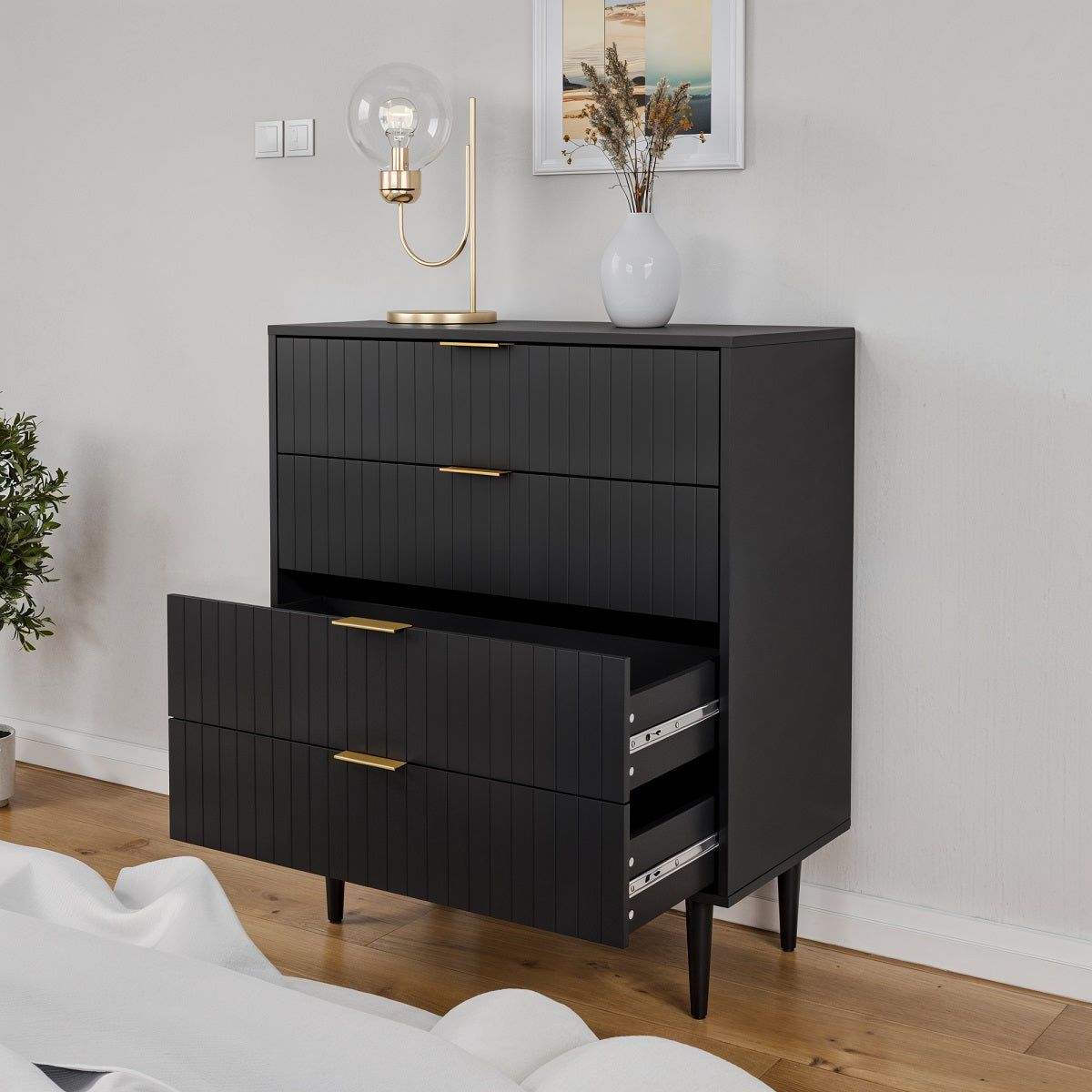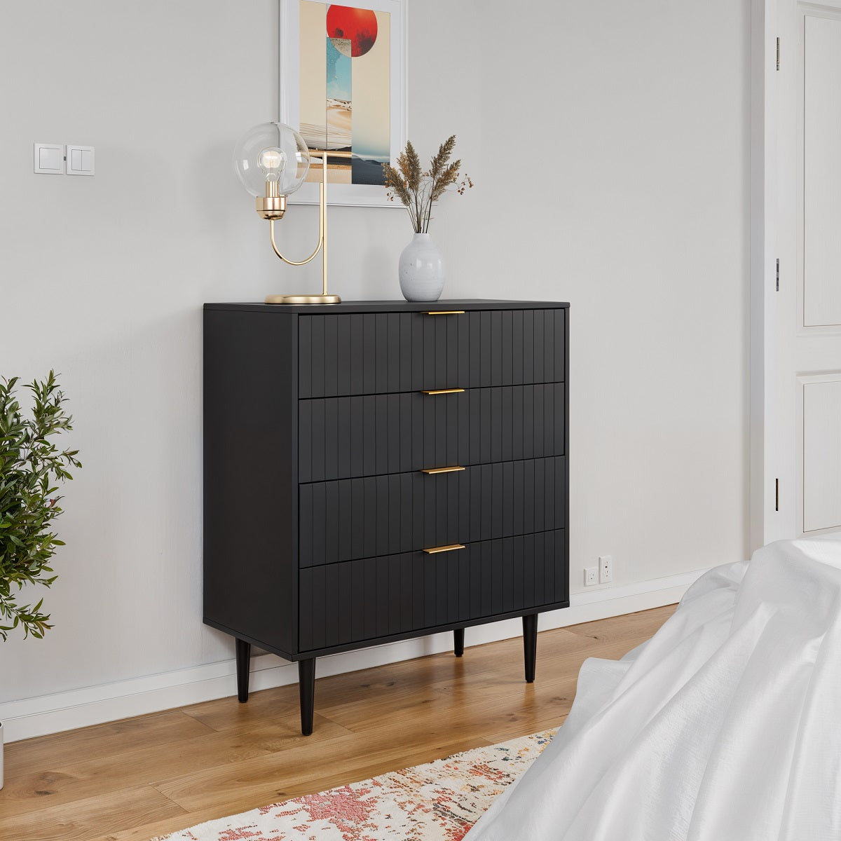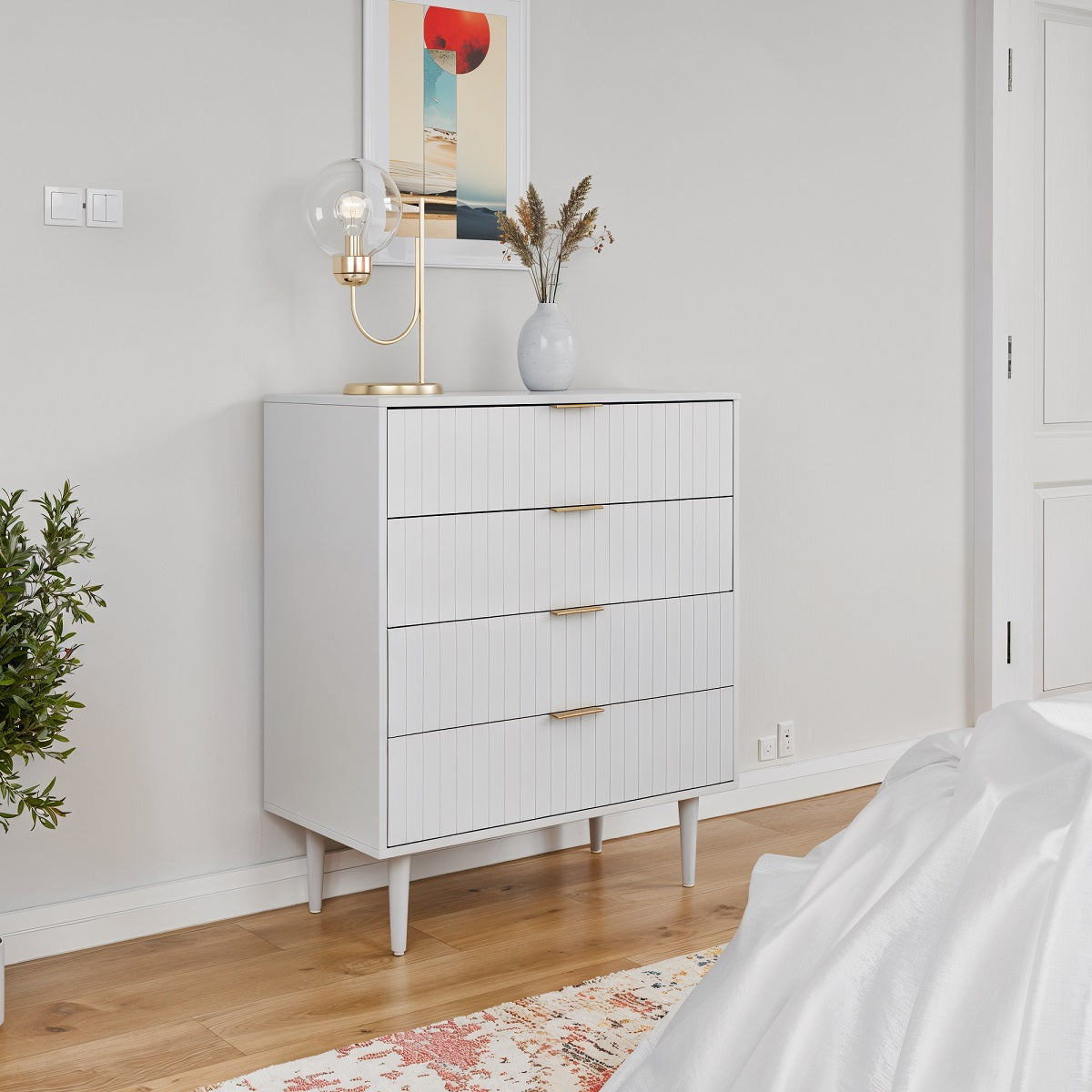 קומודת ארבע מגירות בעיצוב אלגנטי ויוקרתי המתאים לכל חלל עיצוב יוקרתי המשלב פתרון אחסון
