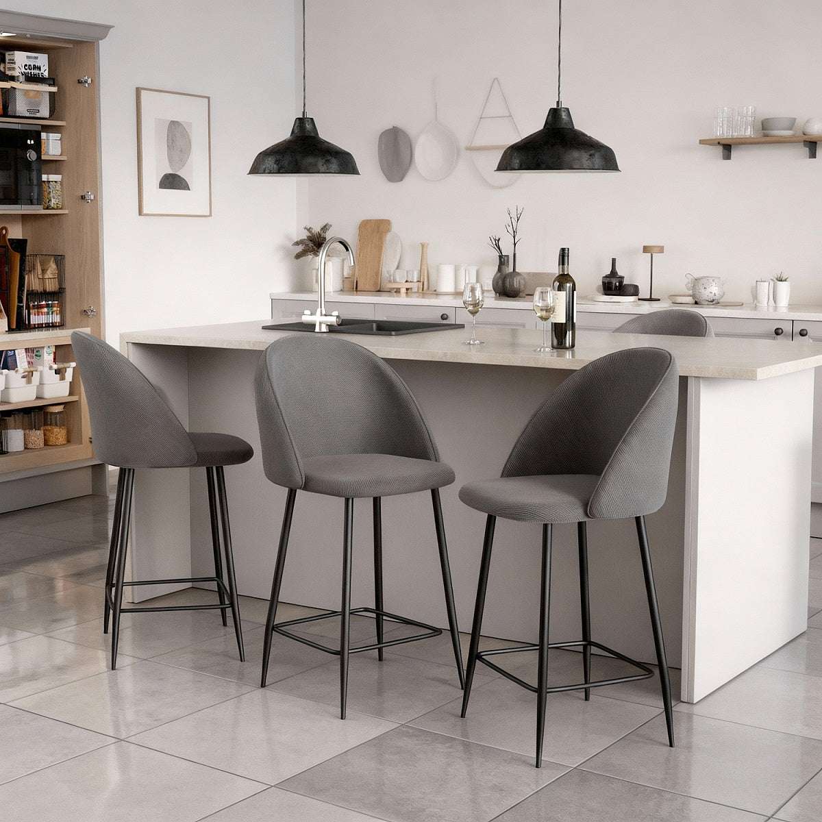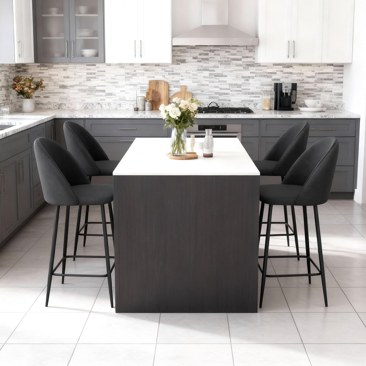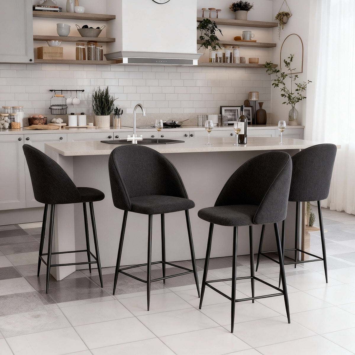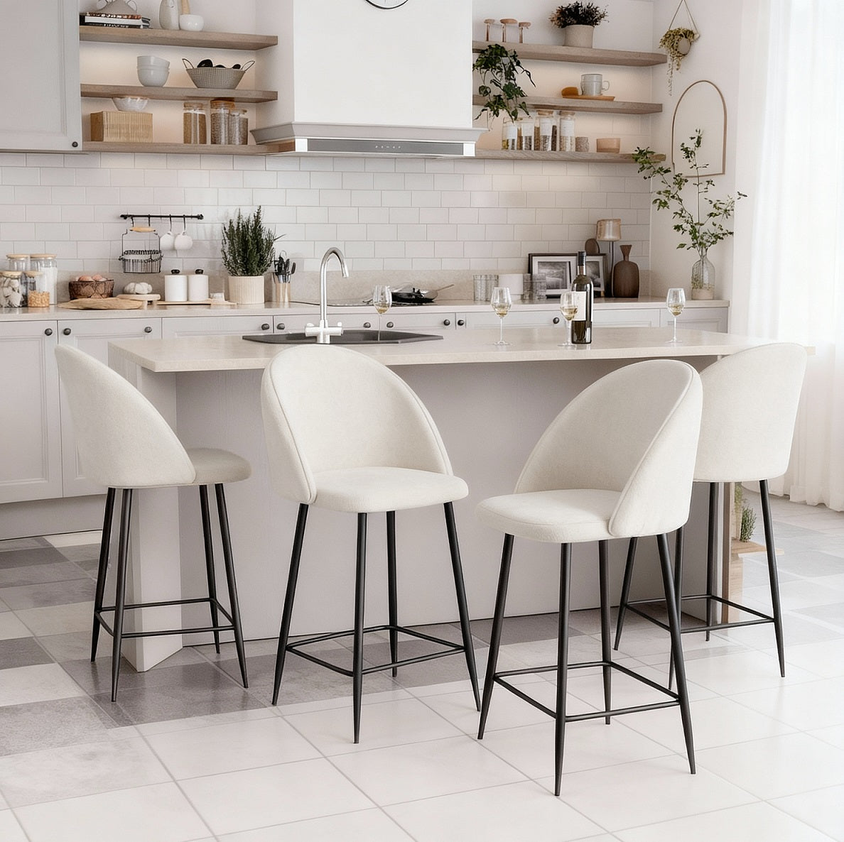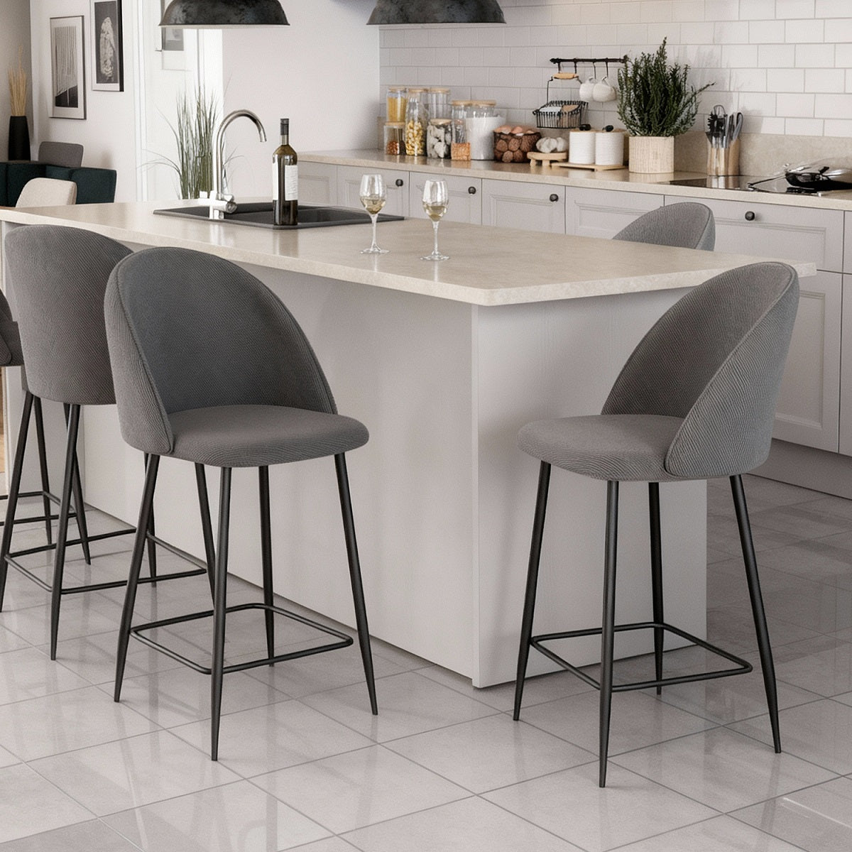 רביעית כיסאות בר מרופדים עם קווים מעוגלים ורגלי מתכת חזקות ויציבות מעניקים למטבח מראה אלגנטי נקי ויוקרתי בלי להתאמץ ובלי לשבור קירות