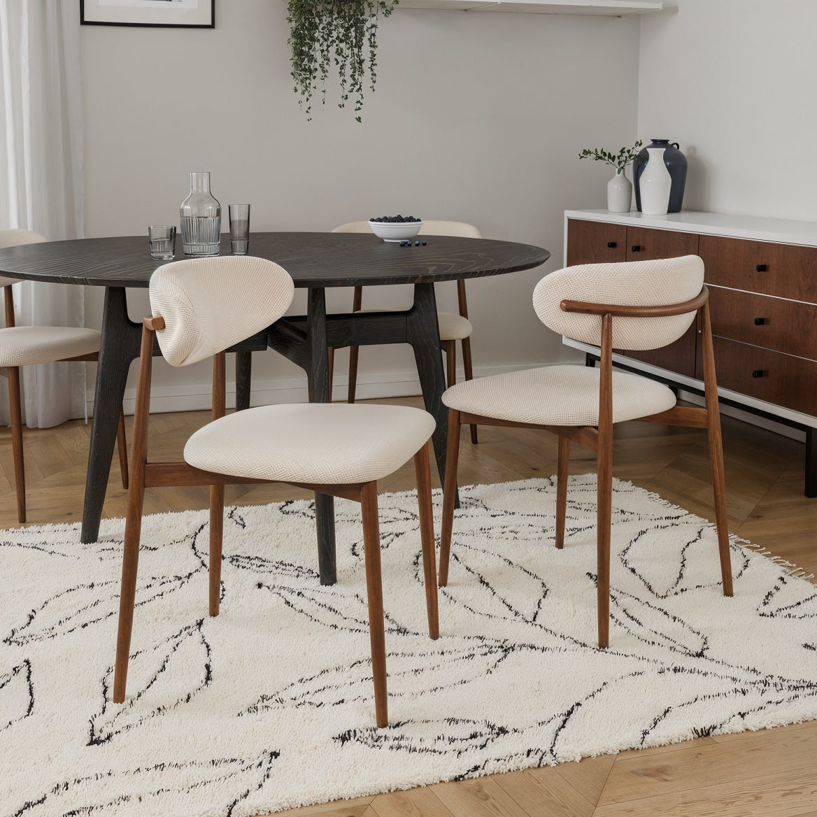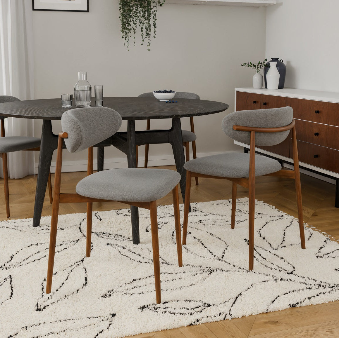 הכיסאות האלה לא רק משלימים את העיצוב – הם גונבים את ההצגה עם מושב ומשענת מרופדים בנדיבות בשילוב בד נעים ומפנק במראה יוקרתי ורגלי מתכת בגוון אגוז מודרני.