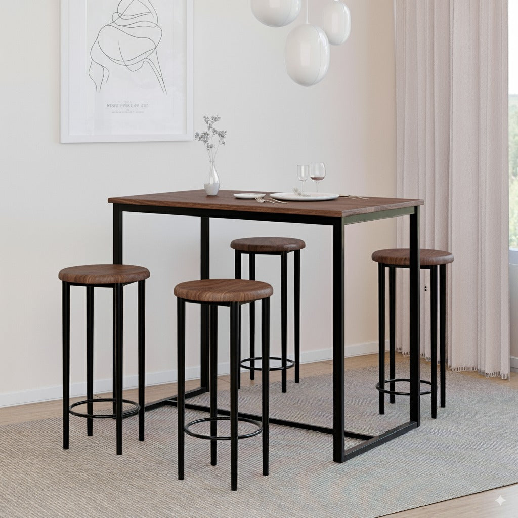 שולחן בר מודרני הכולל 4 כסאות חזקים בעל רגלי מתכת במראה טרנדי ועדכני