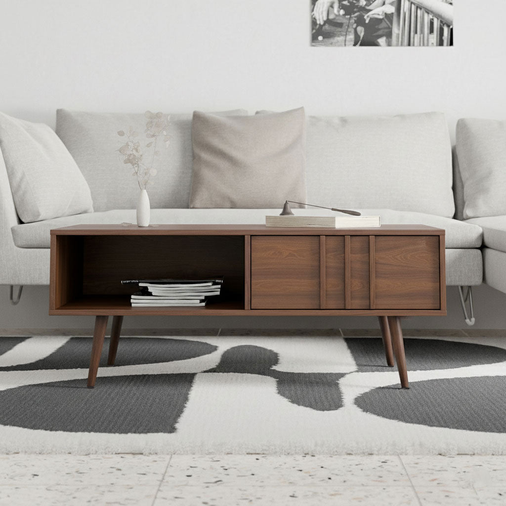 שולחן סלון מעוצב בעל מגירה נפתחת בעלת חלל אחסון גדול וארבע רגליים חזקות ויציבות