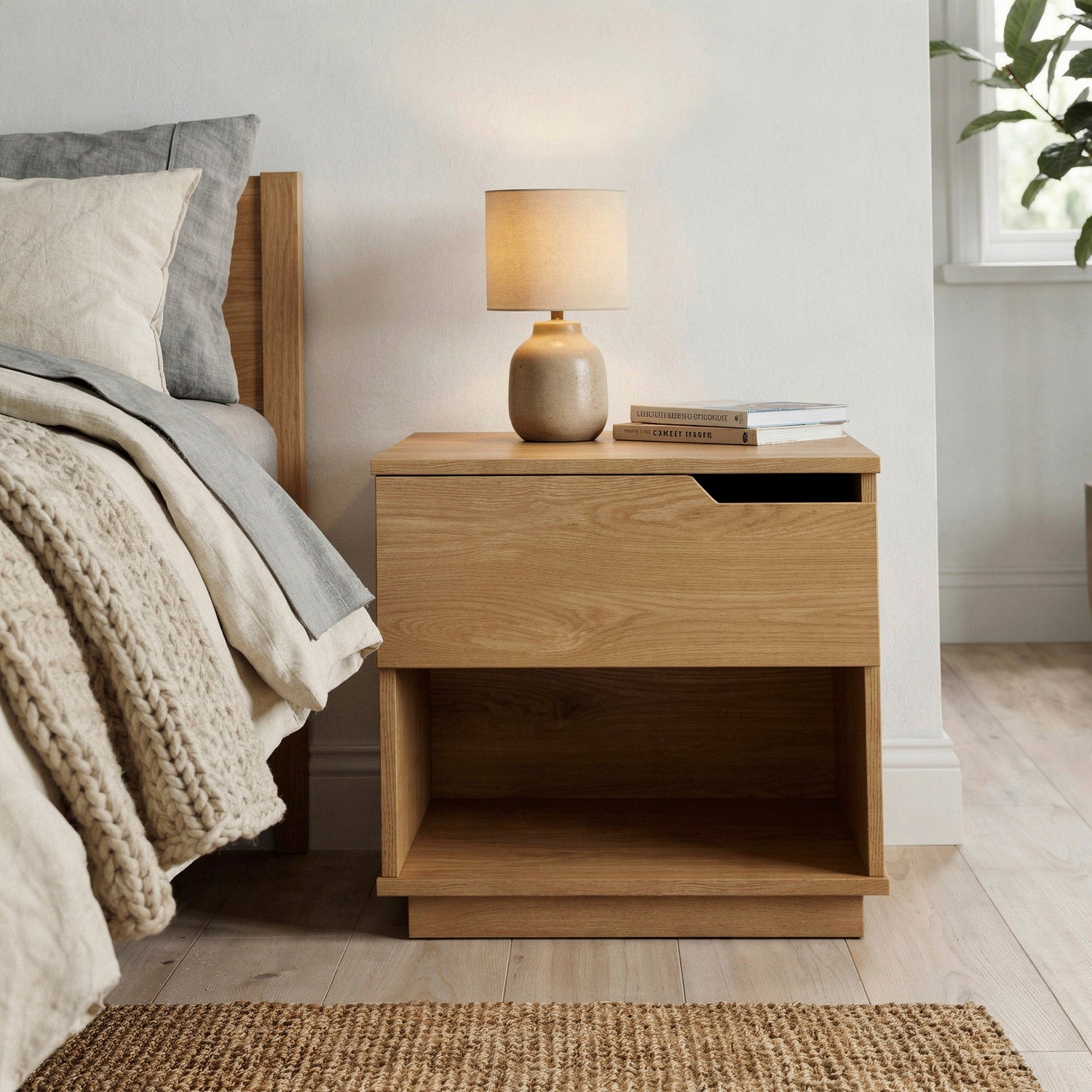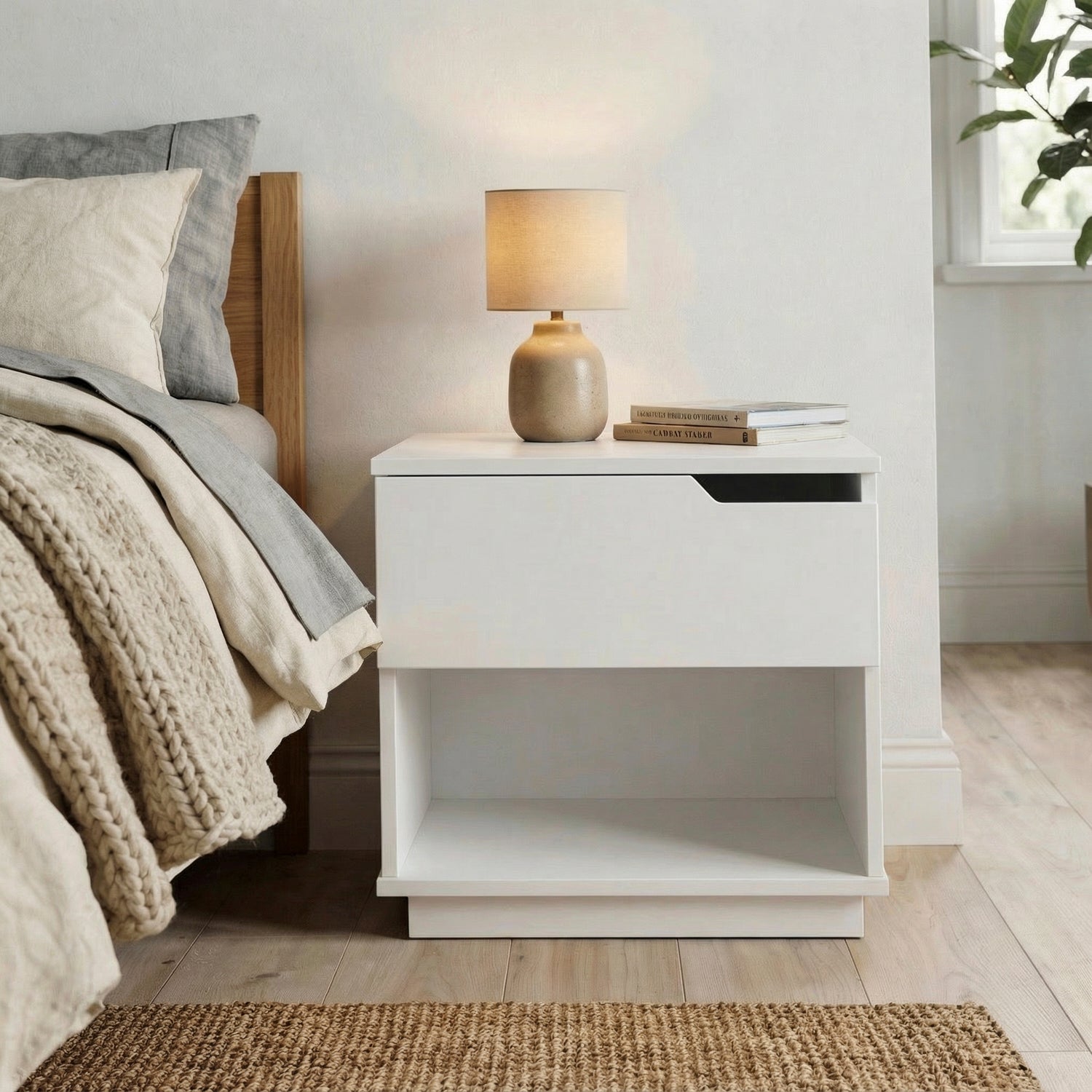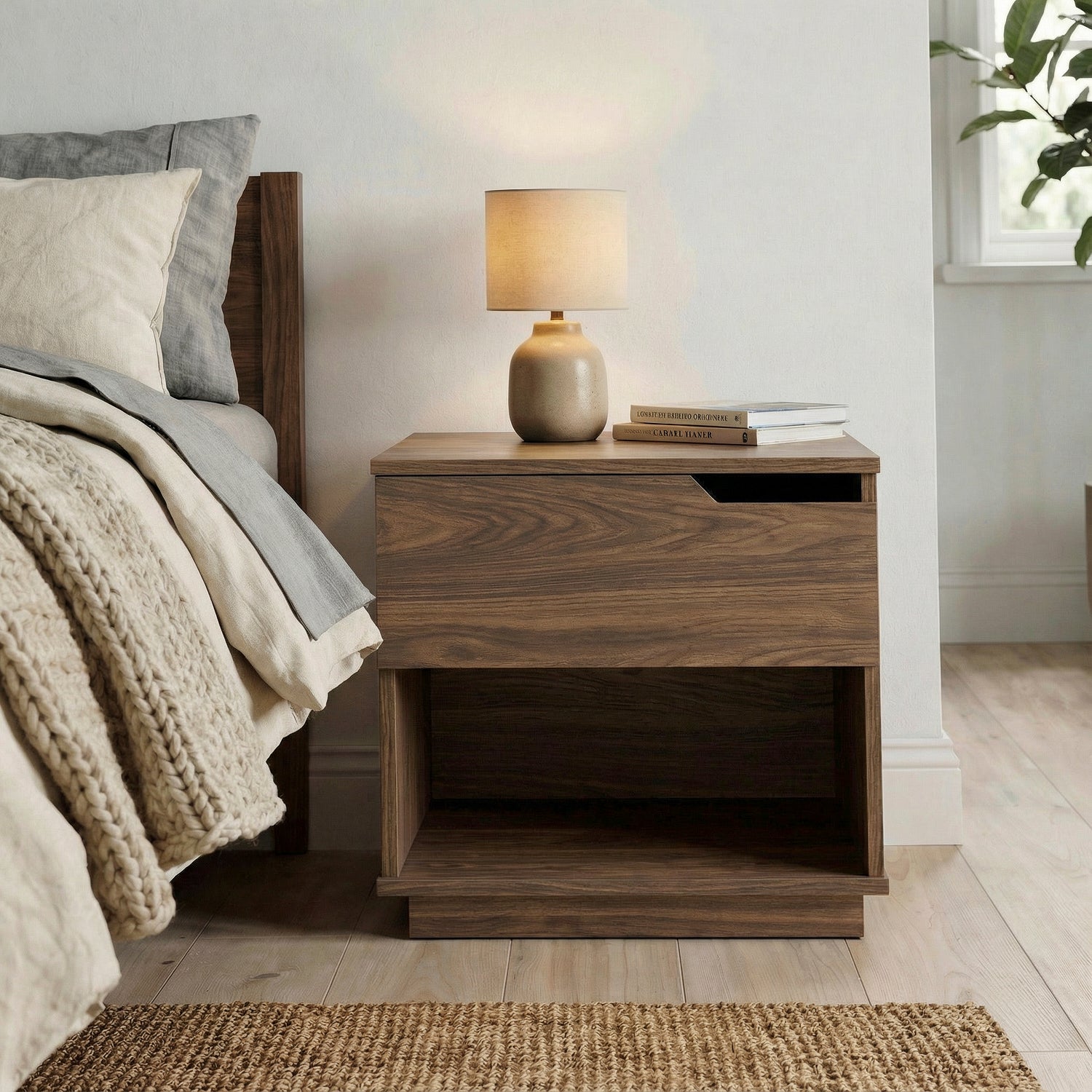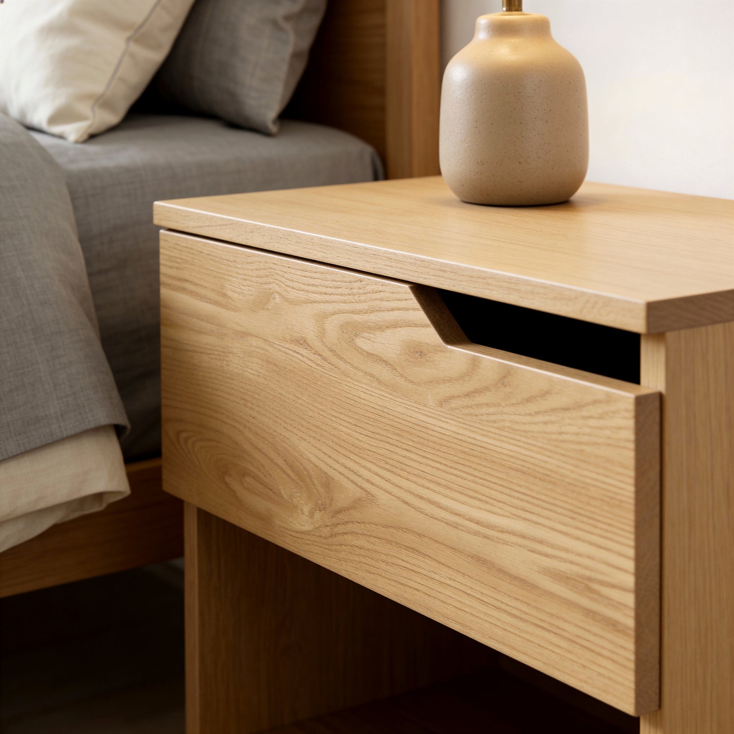 שידת לילה שזורמת עם הסטייל שלך בעיצוב נקי וטבעי שמכניסה אווירה רגועה וסטיילית לחדר השינה.